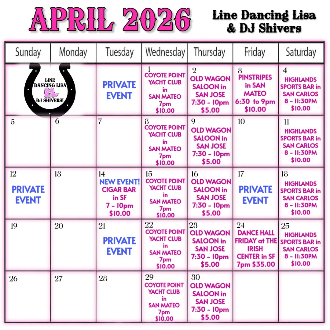 Saturday April 4th - Lessons with Line Dancing Lisa and Music by DJ Paolo